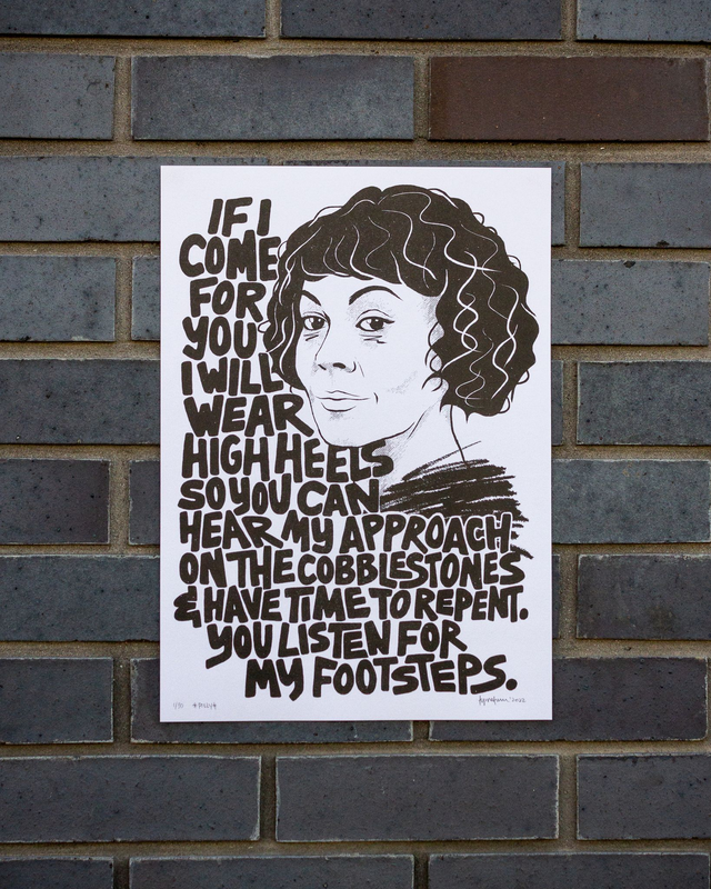 "If I come for you—and I still might yet decide to come for you—I will wear high heels so you can hear my approach on the cobblestones and have time to repent. You listen for my footsteps."