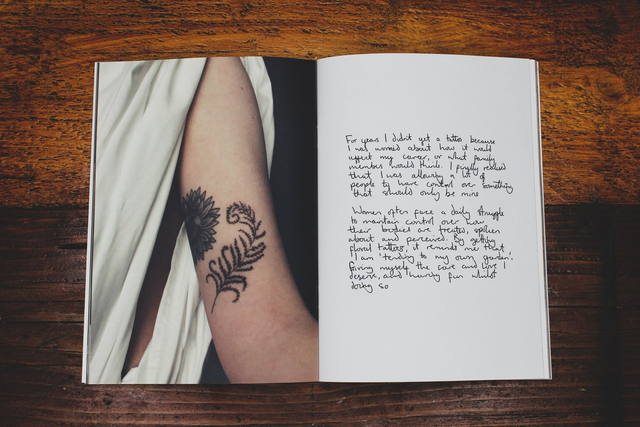 As an act of showing female solidarity, floral tattoos of their choice were designed for a group of women. Each of them were also asked to write a letter about their tattoo choice, their relationship with art/tattoos, their lives and/or why they've decided to participate in this project.